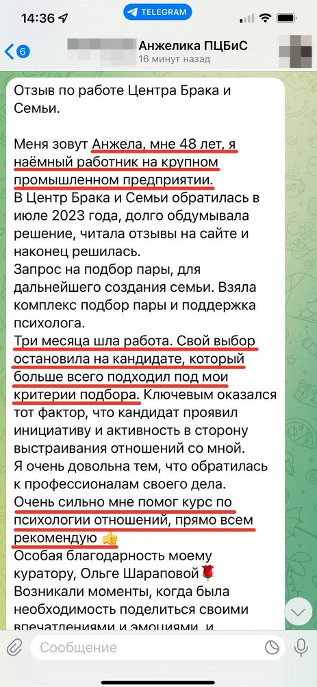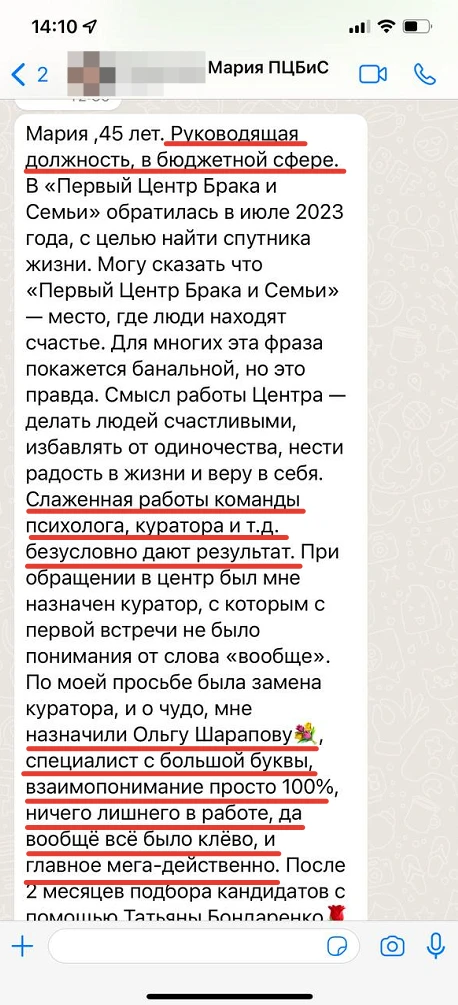 Мы не просто направляем Вам анкетные данные человека с фотографией, мы его презентуем, направляя Вам только проверенную информация, раскрывая потенциал кандидата, особенности, его сильные и яркие черты характера, и таким же филигранным способом мы находим точки соприкосновения с Вами и Вашими предпочтениями, чертами характера, интересами, взглядами!